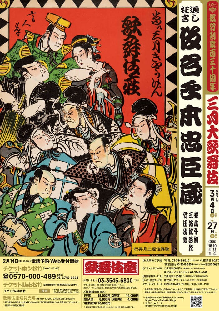 3月の歌舞伎座は「三月大歌舞伎」と題して、「仮名手本忠臣蔵」が通し狂言とし上演されます。