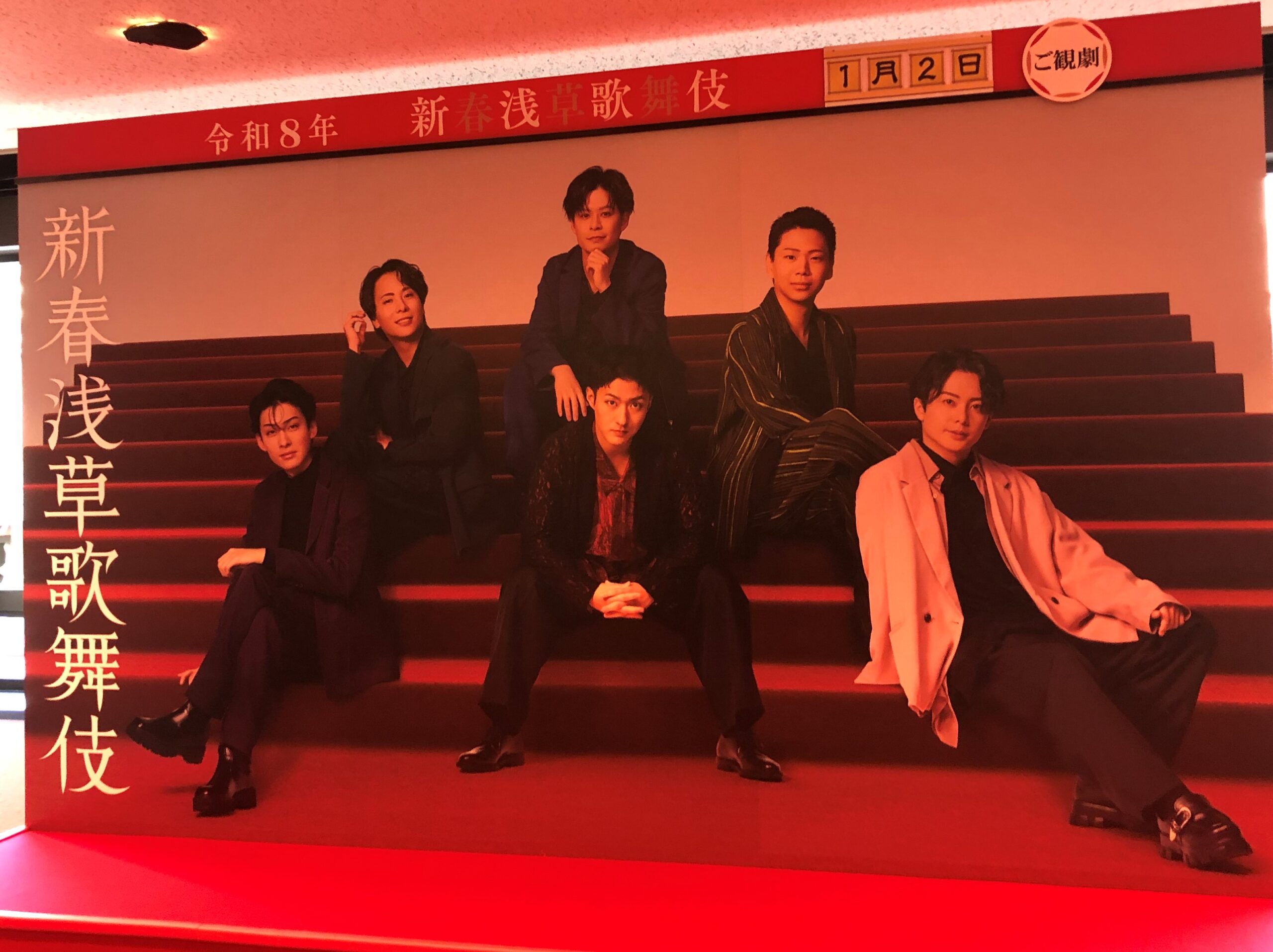新春浅草歌舞伎恒例のあさかぶメンバー6人の超かっこいい集合写真が、2階(1階席後方)のロビーに展示されています。